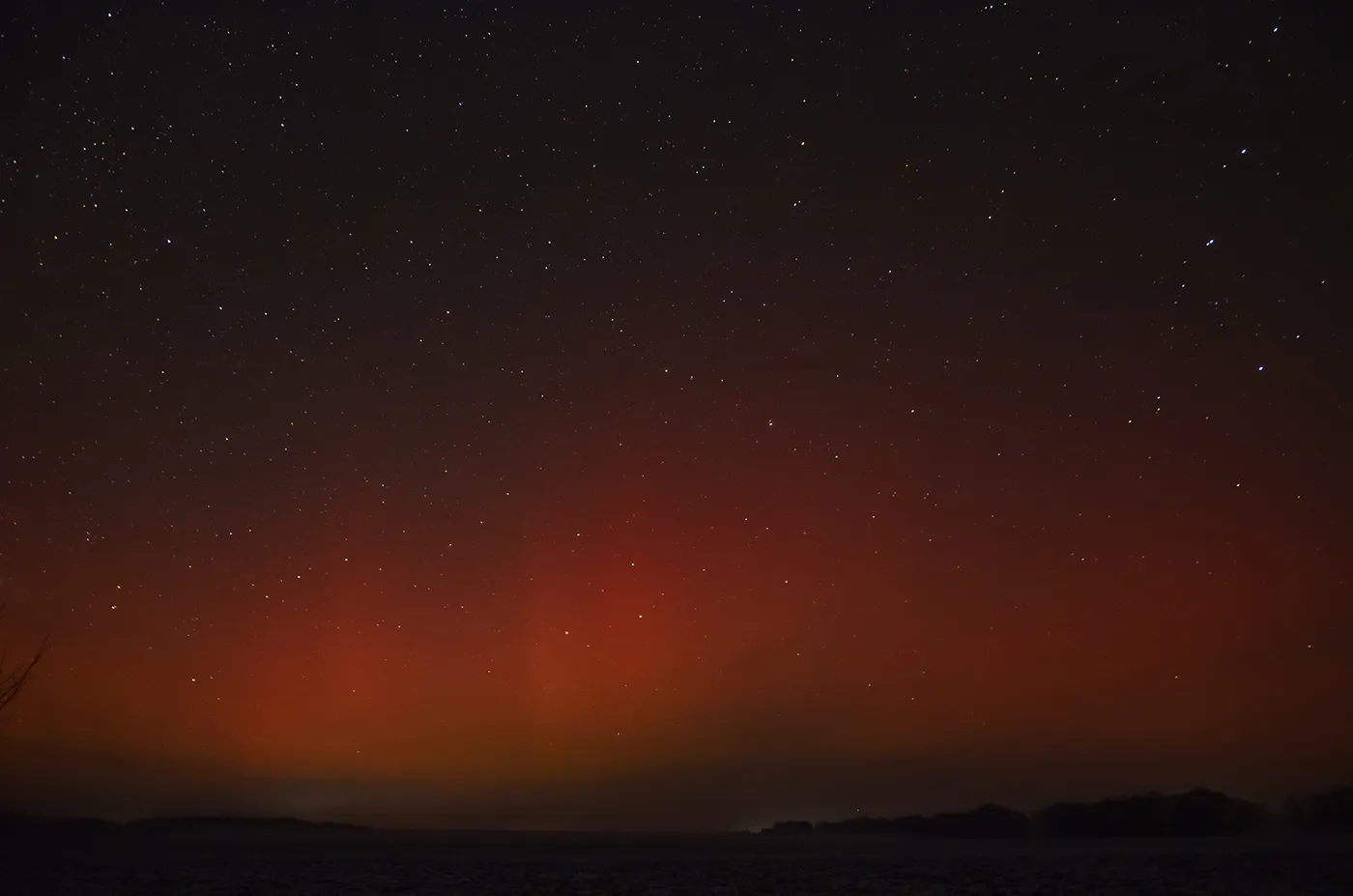 Это уже отголоски полярного сияния на день раньше 19 января. У меня получилось заснять только пиковую фазу, естественно визуально сияние не видно, но неплохо проявилось на фото. Вот несколько кадров.