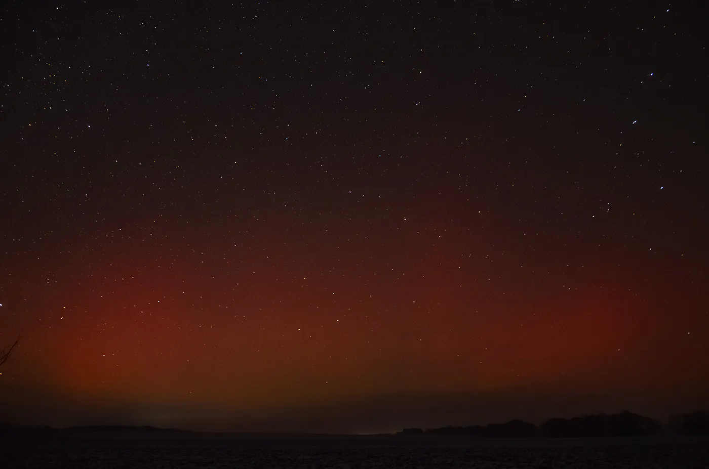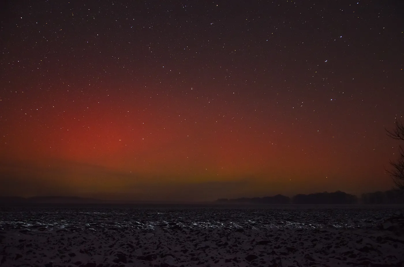 Это уже отголоски полярного сияния на день раньше 19 января. У меня получилось заснять только пиковую фазу, естественно визуально сияние не видно, но неплохо проявилось на фото. Вот несколько кадров.