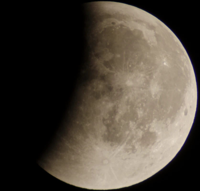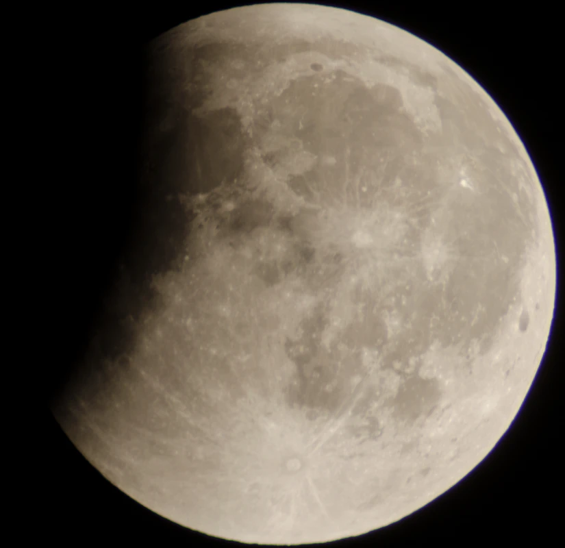 Луна взошла уже в теневой фазе, потом потребовалось некоторое время, чтобы она поднялась над деревьями. Снимал в общем-то только для удовольствия, пригласил компанию друзей, которые смотрели через мой второй Ньютон.