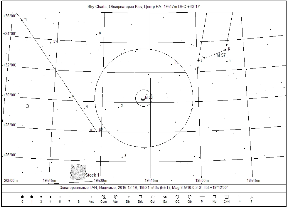 Визуальные карты требуются для приблизительного наведения на объект и основным ориентиром могут быть только яркие звёзды. Посмотри на пример 55-градусной карты для M52.