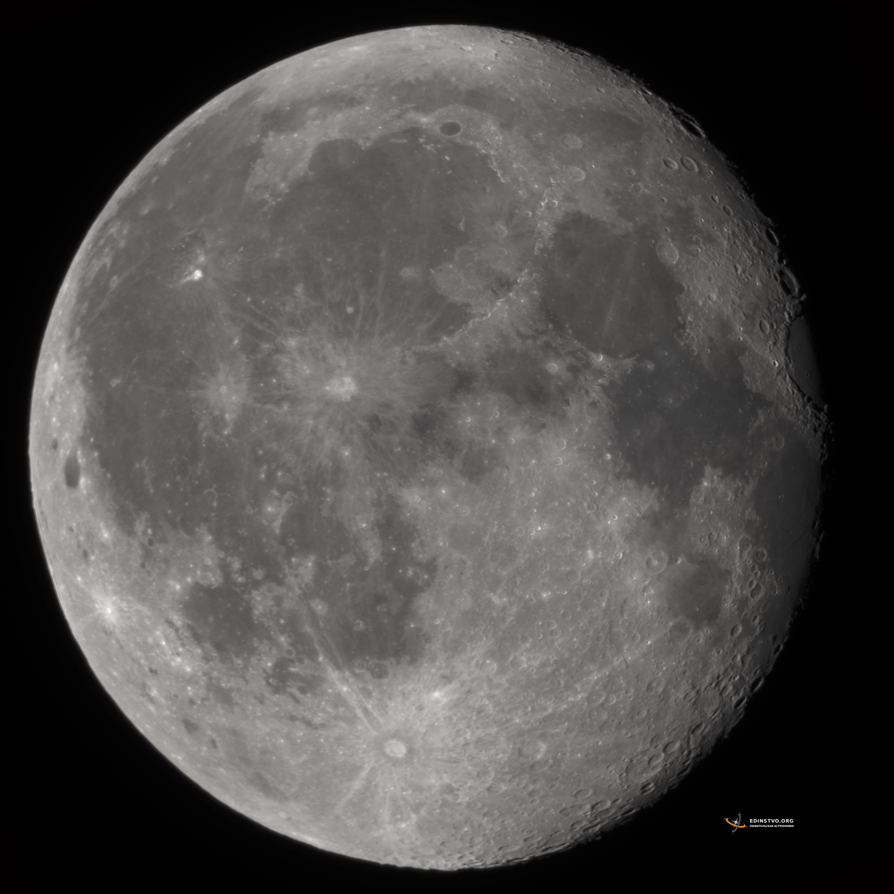Поскольку сейчас почти полнолуние, то снимать можно только Луну. С нашей погодой приходится ловить хотя бы такие моменты. :-) В этот раз небо было ясное, хотя и ветрено. Использовал несколько серий, в итоге в сложении пошло 212 кадров.